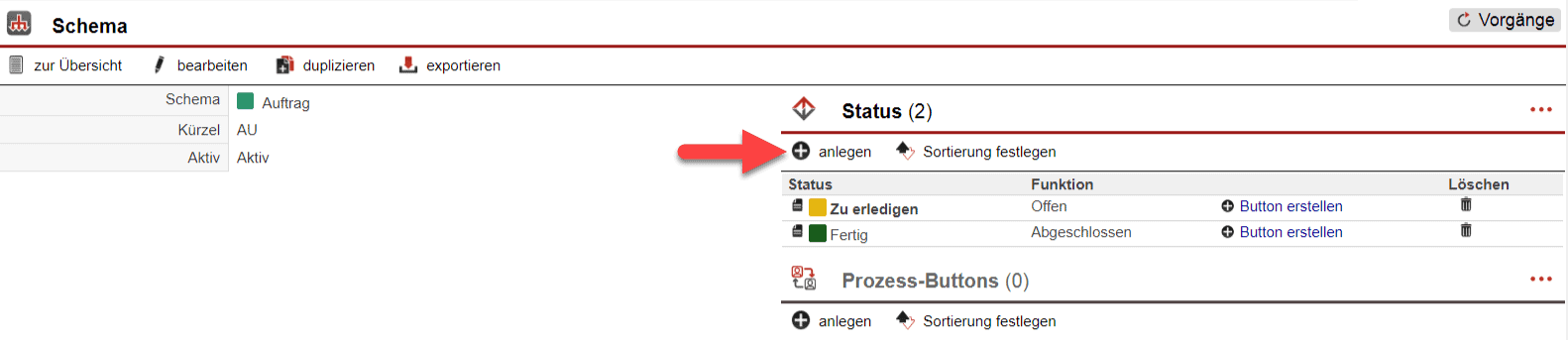 Nachfolgend finden Sie eine Schritt-für-Schritt-Anleitung, wie Sie Vorgangsschemas anlegen.