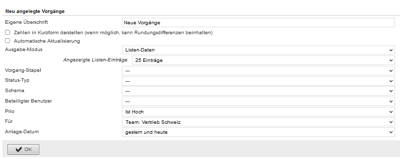 - Neu angelegte Vorgänge