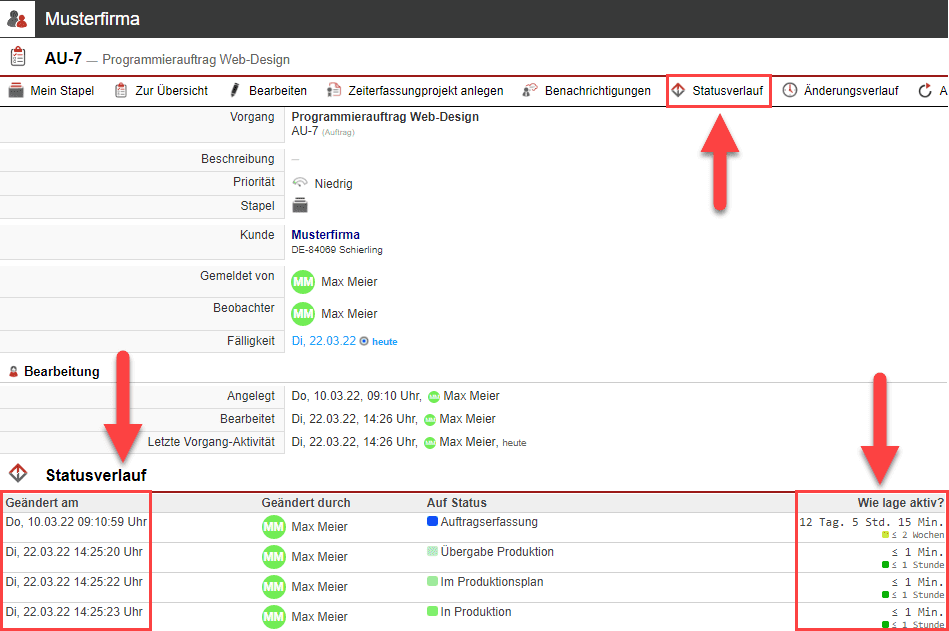Der Statusverlauf von Vorgängen