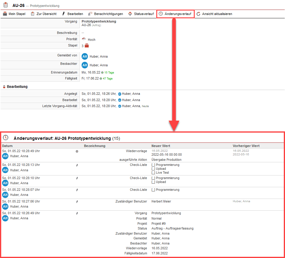 Der Änderungsverlauf von Vorgängen
