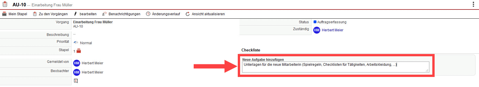 Innerhalb eines Vorgangs lassen sich übersichtliche Checklisten erstellen, die dabei helfen, einen zusätzlichen, detaillierteren Überblick über die Teilaufgaben, die im Rahmen eines Vorgangs zu erledigen sind, zu behalten.