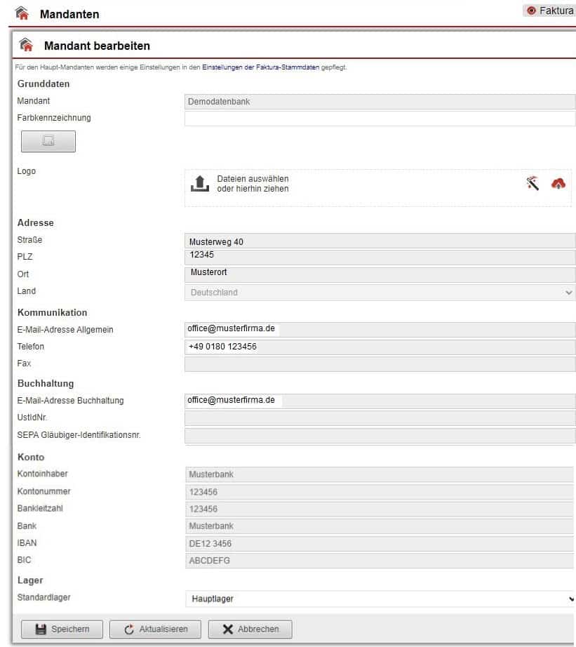 Änderungen am Mandant sind in folgenden Feldern möglich: