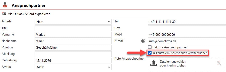 So veröffentlichen Sie einzelne Ansprechpartner im zentralen Adressbuch