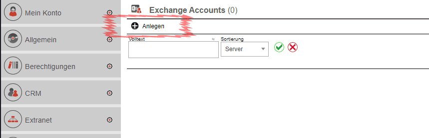 - Melden Sie sich in Ihrer ameax Unternehmenssoftware an, öffnen Sie im Einstellungsbereich bei „Schnittstellen & Dienste“ den Bereich „Exchange Accounts“ und klicken auf „Anlegen“.