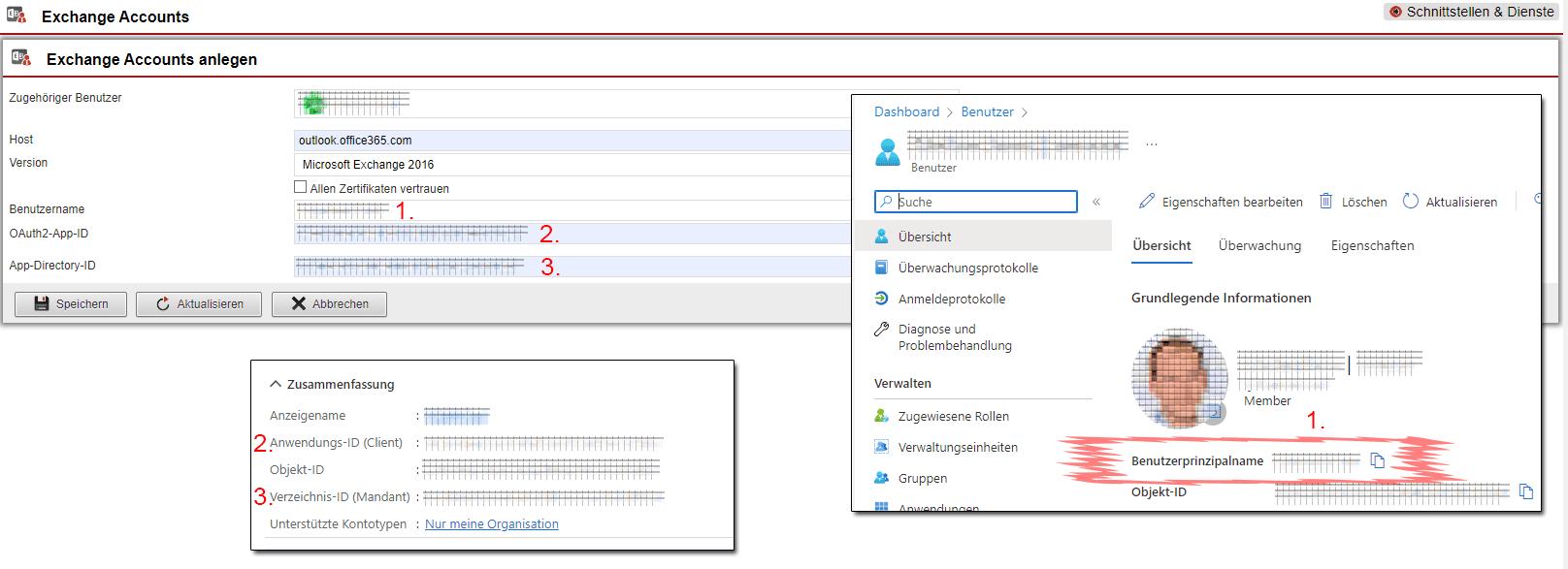 - Tragen Sie bitte in das Feld „OAuth2-App-ID“ (2) die „Anwendungs-ID (Client)“ aus Schritt 1.3 ein.