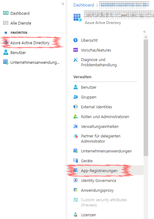 - Wählen Sie bitte im ersten Menü den Punkt „Azure Active Directory“