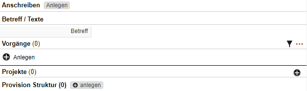 In der rechten Spalte der Bearbeitungsmaske eines Lieferscheins haben Sie die Möglichkeit, bereits ein Anschreiben anzulegen, Vorgänge oder Projekte zu hinterlegen oder eine spezielle Provision Struktur zu definieren.