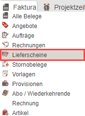 Begeben Sie sich über den Hauptmenüpunkt „Faktura“ in den Bereich „Lieferscheine“, um alle erstellten Lieferscheine einsehen zu können.