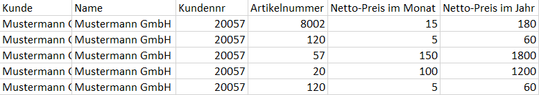 Die erstellte Auswertung kann, wie bereits oben beschrieben, über den entsprechenden Funktions-Button als CSV-Datei (Excel-Tabelle) ausgegeben werden [Abb. 9].