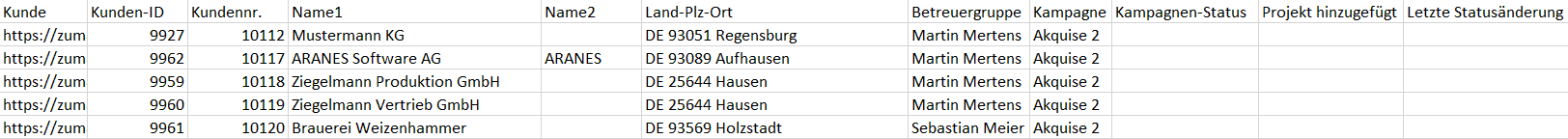 Es wird eine Datei erstellt und direkt heruntergeladen. - „Massenbearbeitung über Kunden“