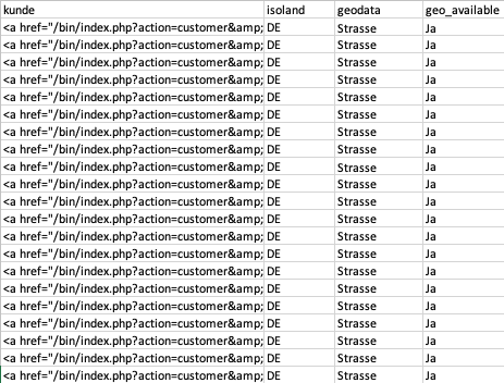 In [Abb. 5] ist das Beispiel einer Auswertung als CSV-Datei (Excel-Datei) zu sehen. Die Darstellungen variieren von Fall zu Fall, je nachdem, wie der Filter konfiguriert wurde.