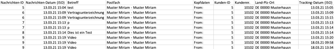 In der „Nachrichten Klick-Statistik“ finden Sie eine detaillierte Auswertung, welche versendeten Nachrichten, wann und wie oft geöffnet wurden. Erreichbar ist die „Nachrichten Klick-Statistik“ im Hauptmenüpunkt „Statistik“ unter „Nachrichten“, bei „Nachrichten Klick-Statistik“.