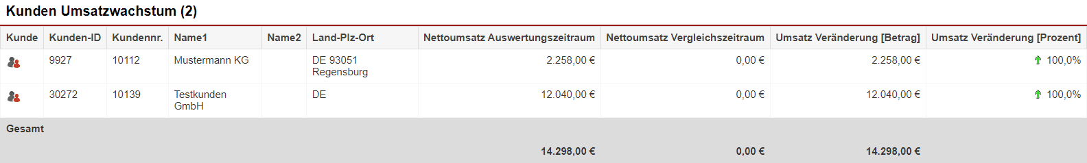 Die Statistik „Kunden Umsatzwachstum“ im Überblick